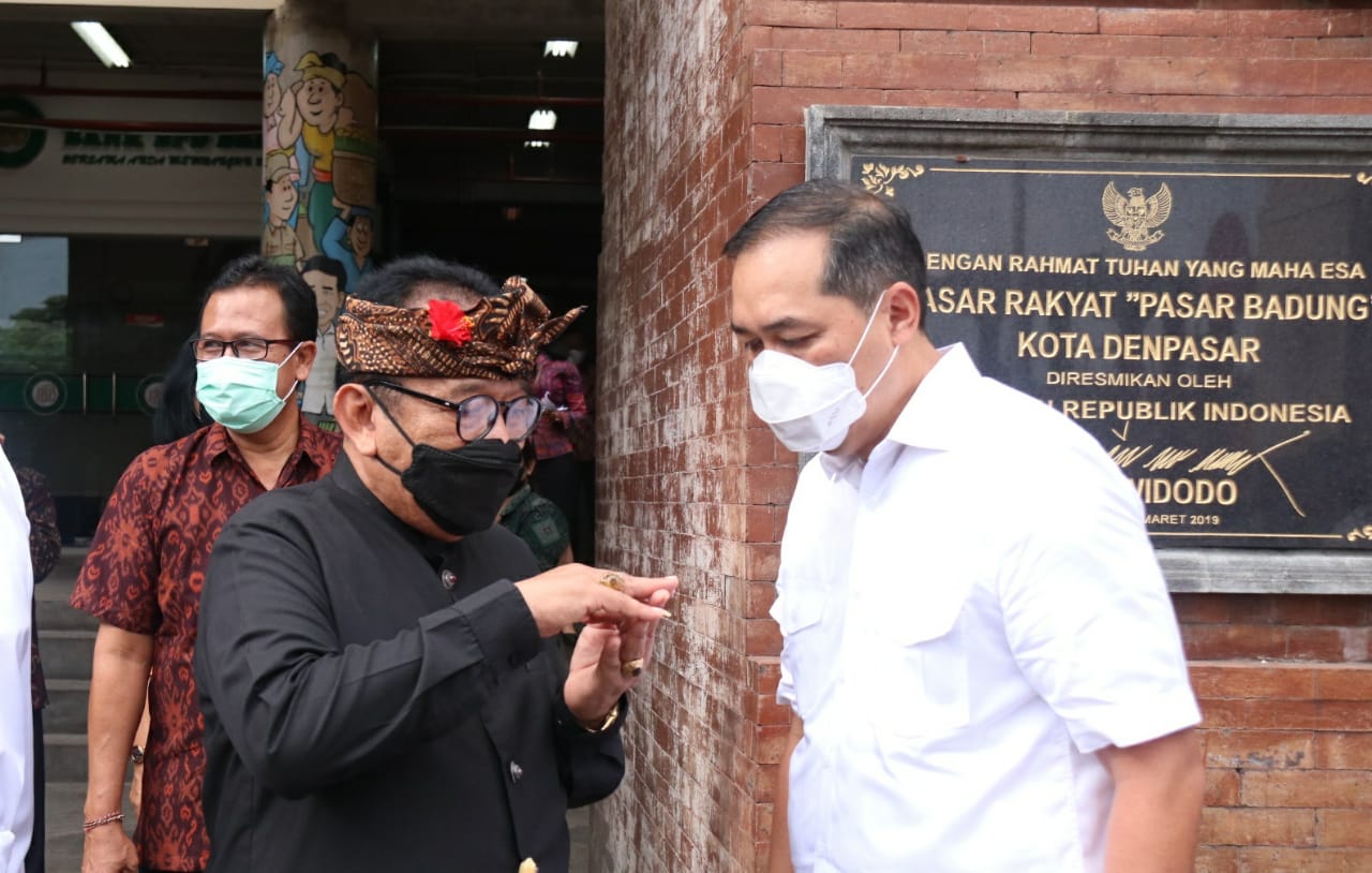 Denpasar, baliilu.com – Menteri Perdagangan (Mendag) Republik Indonesia Muhammad Lutfi didampingi Wakil Gubernur Bali Prof. Tjokorda Oka Artha Ardana Sukawati (Cok Ace) dan Walikota Denpasar IGN. Jaya Negara meninjau Pasar Badung, Sabtu (25/9/2021). Peninjauan ini merupakan bagian dari persiapan Pasar Badung sebagai percontohan penerapan SOP PeduliLindungi di pasar tradisional.