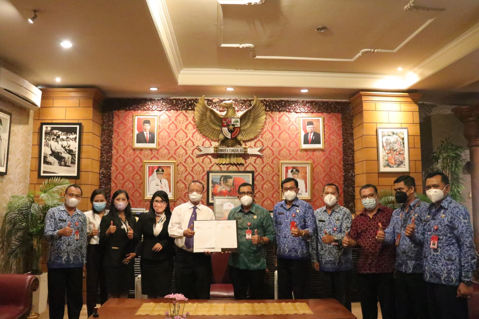 Bupati Tabanan Dr. Komang Gede Sanjaya, S.E., M.M. foto bersama dengan beberapa pimpinan universitas di Bali usai tanda tangani kerja sama. (Foto: Ist)