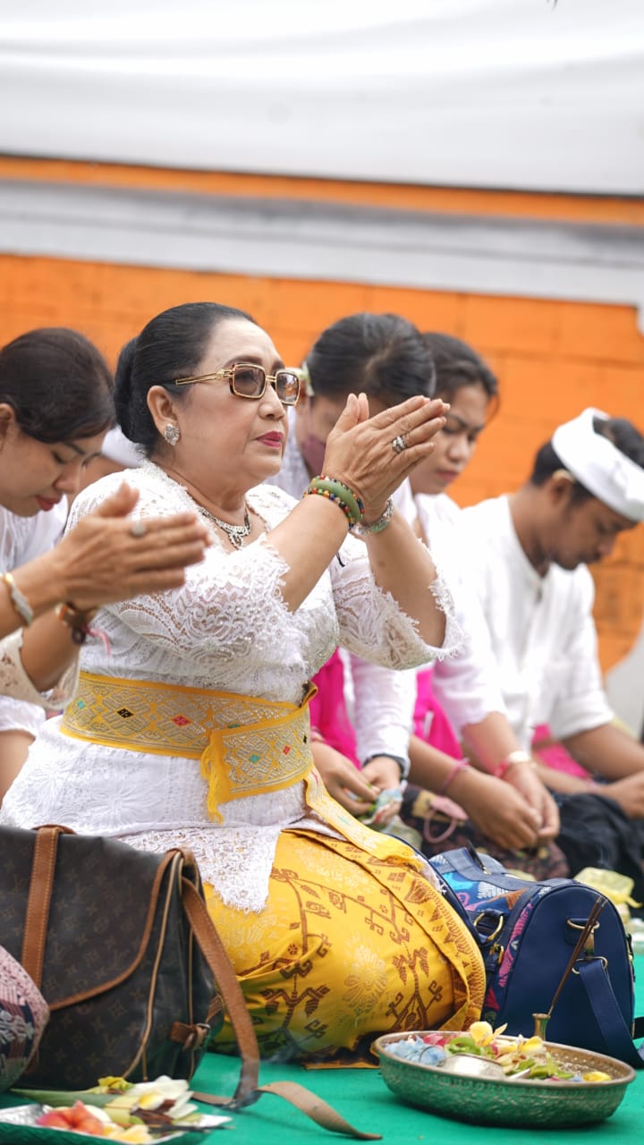 Ny. Tjok Putri Hariyani Ardana Sukawati, saat sembahyang bersama. (Foto: Ist)