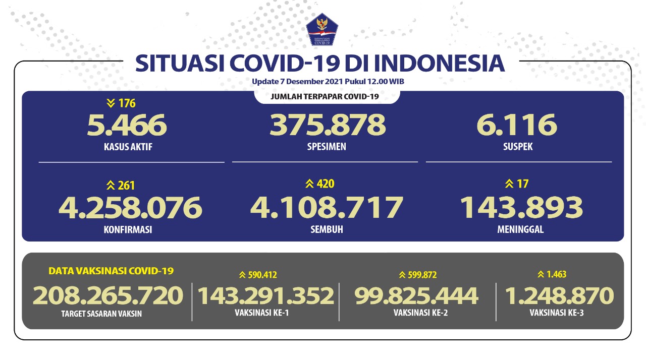 Dengan demikian secara kumulatif kasus terkonfirmasi positif menjadi 114.275 orang, pasien sembuh 110.067 orang dan meninggal dunia 4.049 orang.