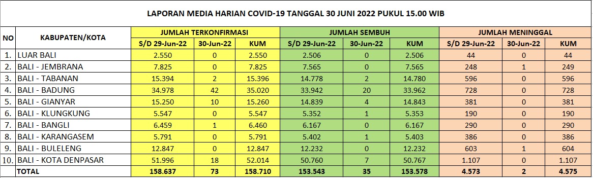 Data Covid-19 per 30 Juni 2022. (Foto: Ist)