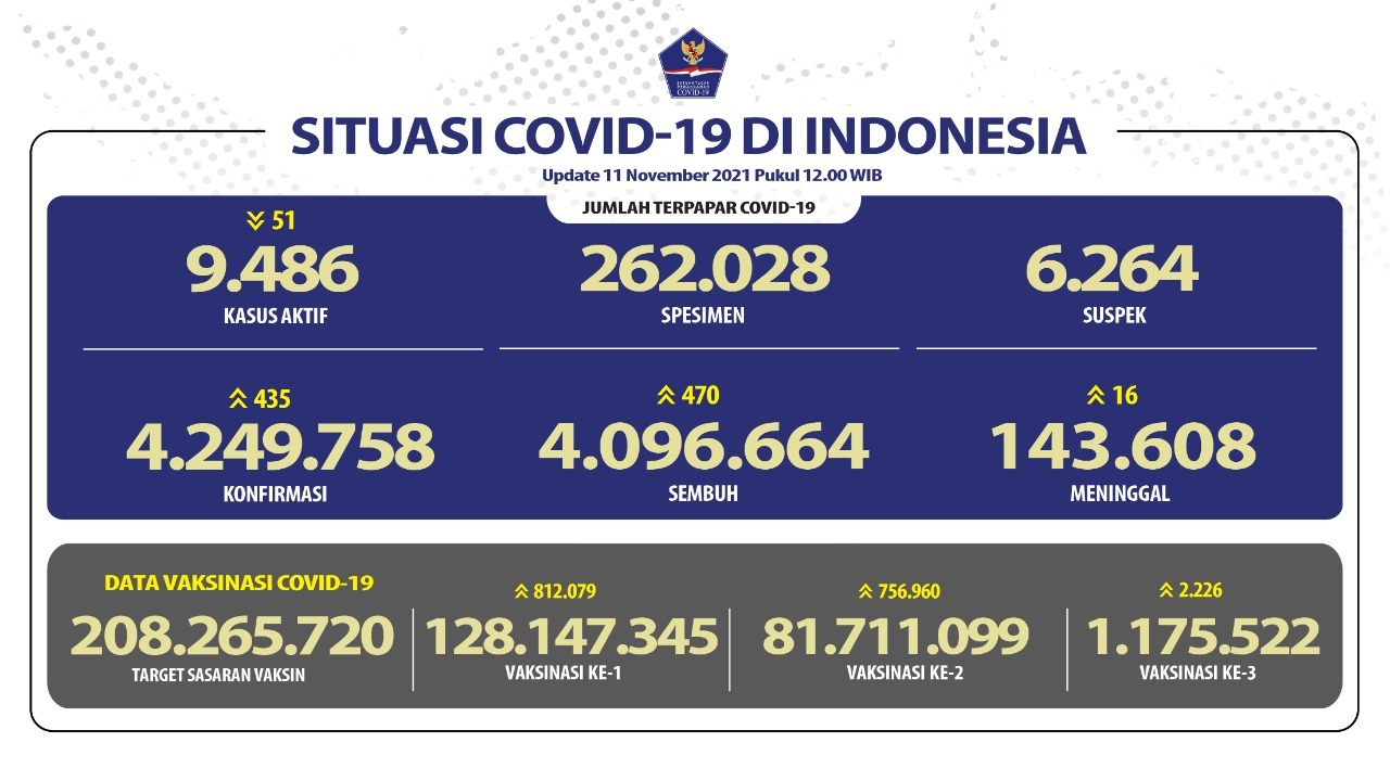 Dengan demikian secara kumulatif kasus terkonfirmasi positif menjadi 114.028 orang, pasien sembuh 109.775 orang dan meninggal dunia 4.034 orang.