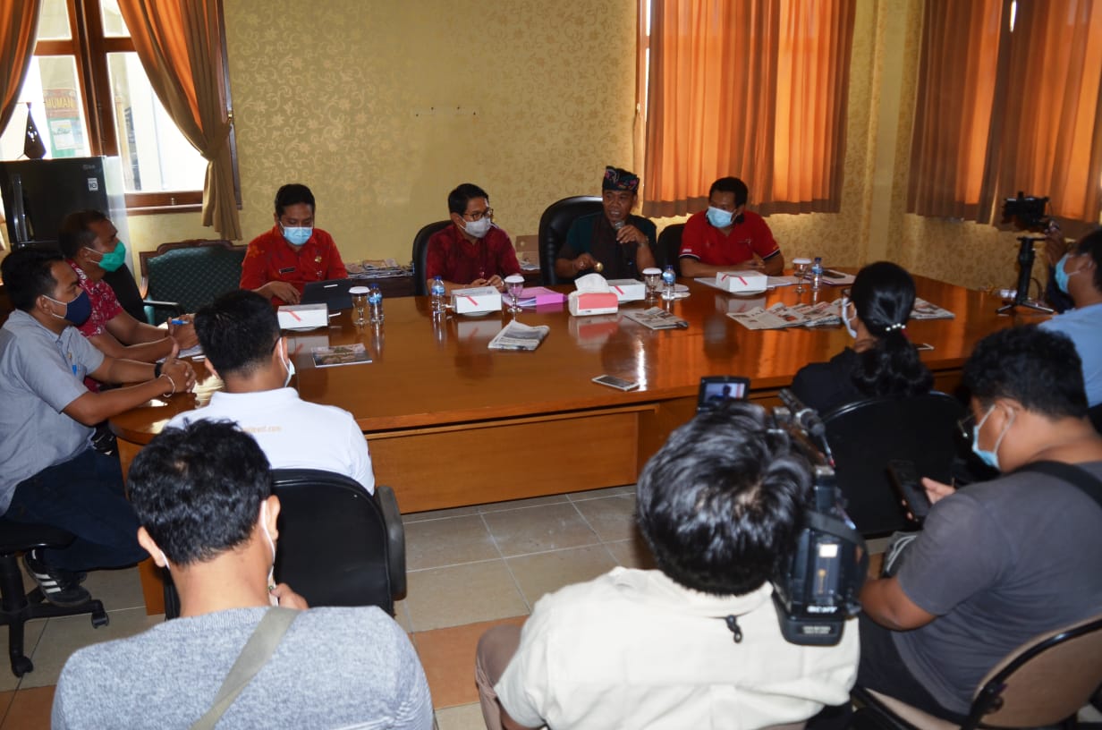 Pjs. Bupati Lihadnyana saat berlangsung jumpa media di Press Room Bagian Humas Setda Badung, Jumat (6/11). Turut serta mendampingi Sekda I Wayan Adi Arnawa, Kabag Humas Made Suardita dan Kabid Industri Pariwisata Ngakan Putu Tri Ariawan.