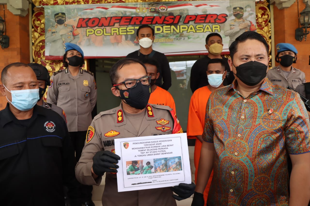 Kapolresta Denpasar AKBP Bambang Yugo Pamungkas, S.H., S.I.K.,M.Si. didampingi Kasat Resnarkoba Kompol Mikael Hutabarat, S.H.,S.I.K.,M.H. kepada media Jumat (11/3/2022) menjelaskan, korban merupakan seorang anak perempuan berinisial RR (17) dimana dalam video yang viral terlihat korban dianiaya dua orang pria saat berada di lapangan futsal. Dua orang pelaku bernama Andy (36) dan Ruben (40) asal Sumba Timur yang merupakan anggota satgas keamanan kegiatan.