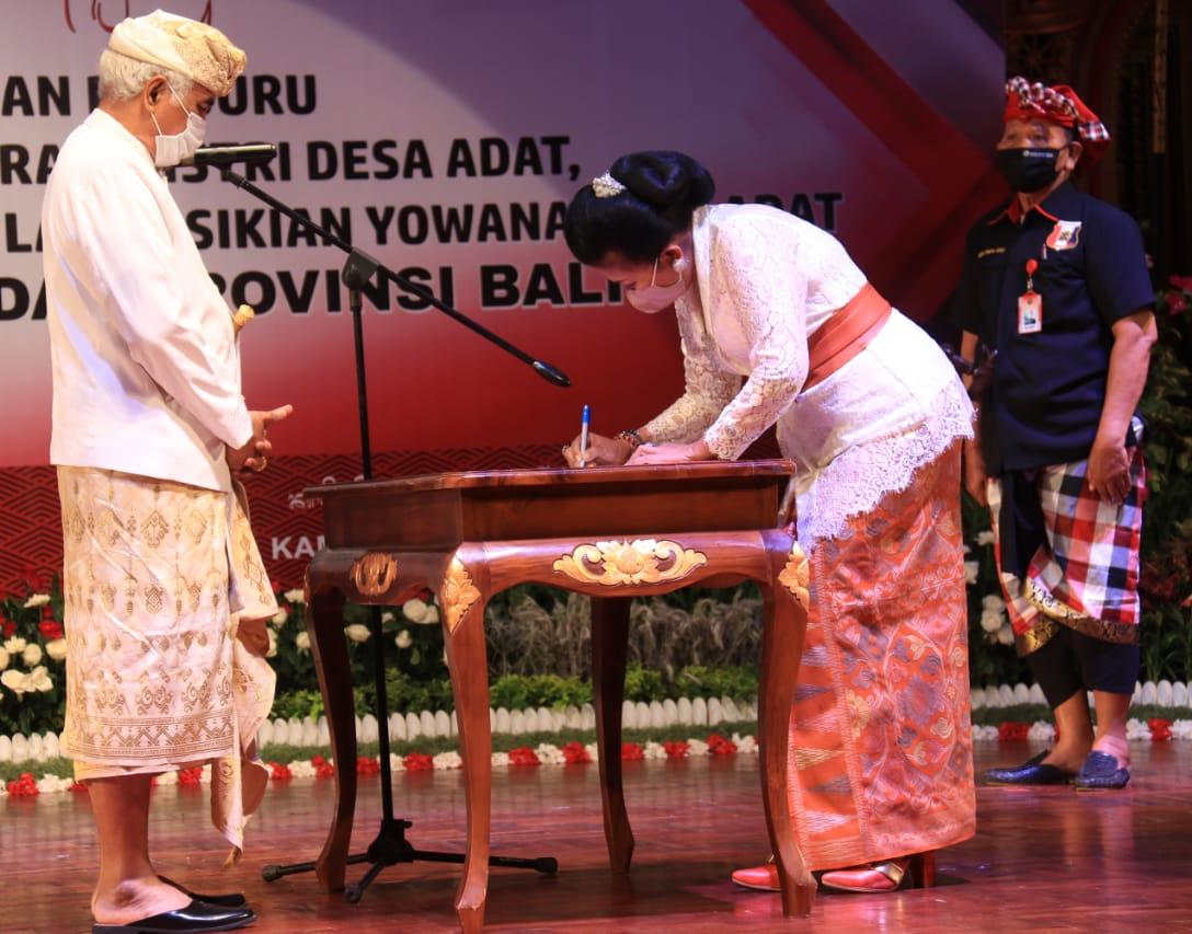 Lebih lanjut Gubernur Wayan Koster di dalam sambutannya dihadapan Bendesa Madya MDA Kabupaten/Kota di Bali, Paiketan Krama Istri Desa Adat di Bali (Pakis Bali), Pasikian Pacalang Bali, dan Pasikian Yowana Desa Adat di Bali dengan nada terharu mengatakan desa adat adalah lembaga yang sangat mulia.