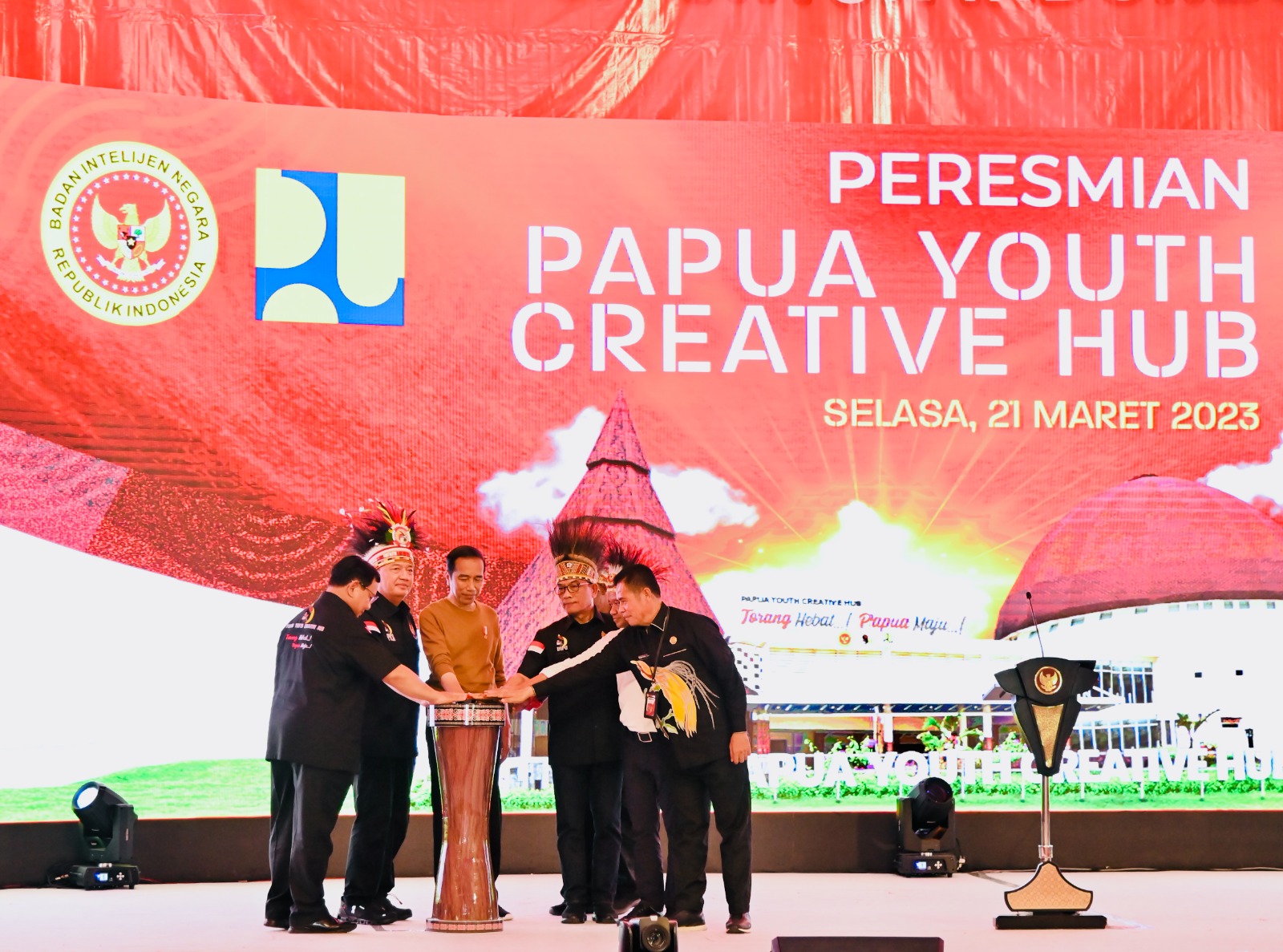 Presiden Joko Widodo meresmikan secara langsung Papua Youth Creative Hub (PYCH), Kota Jayapura, Provinsi Papua, pada Selasa, 21 Maret 2023. (Foto: Laily Rachev)