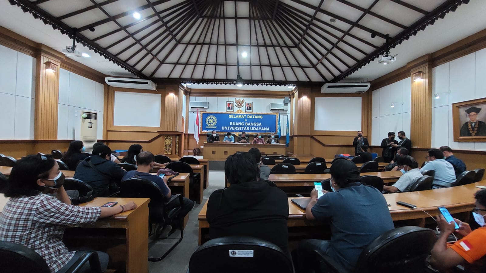 Demikian pernyataan resmi Rektor Universitas Udayana yang disampaikan Juru Bicara Unud Dr. Senja Pratiwi saat konferensi pers, Selasa (12/4/2022) di Gedung Bangsa Kampus Jimbaran, Badung. Hadir mendampingi Tim Hukum Universitas Udayana sebagai Penanggung Jawab Dekan Fakultas Hukum Universitas Udayana Dr. Putu Gde Sumertayasa, S.H., M.Hum., Ketua Tim Ahli Bidang Hukum Unud Dr. I Nyoman Suyatna, S.H., M.H., Wakil Ketua Tim Ahli Bidang Hukum Unud sekaligus juga Tim Kuasa Hukum Dr. I Nyoman Sukandia, S.H.,M.H., anggota Tim Ahli Bidang Hukum I Nyoman Darmada, S.H., M.H., dan I Nyoman Putra, S.H.