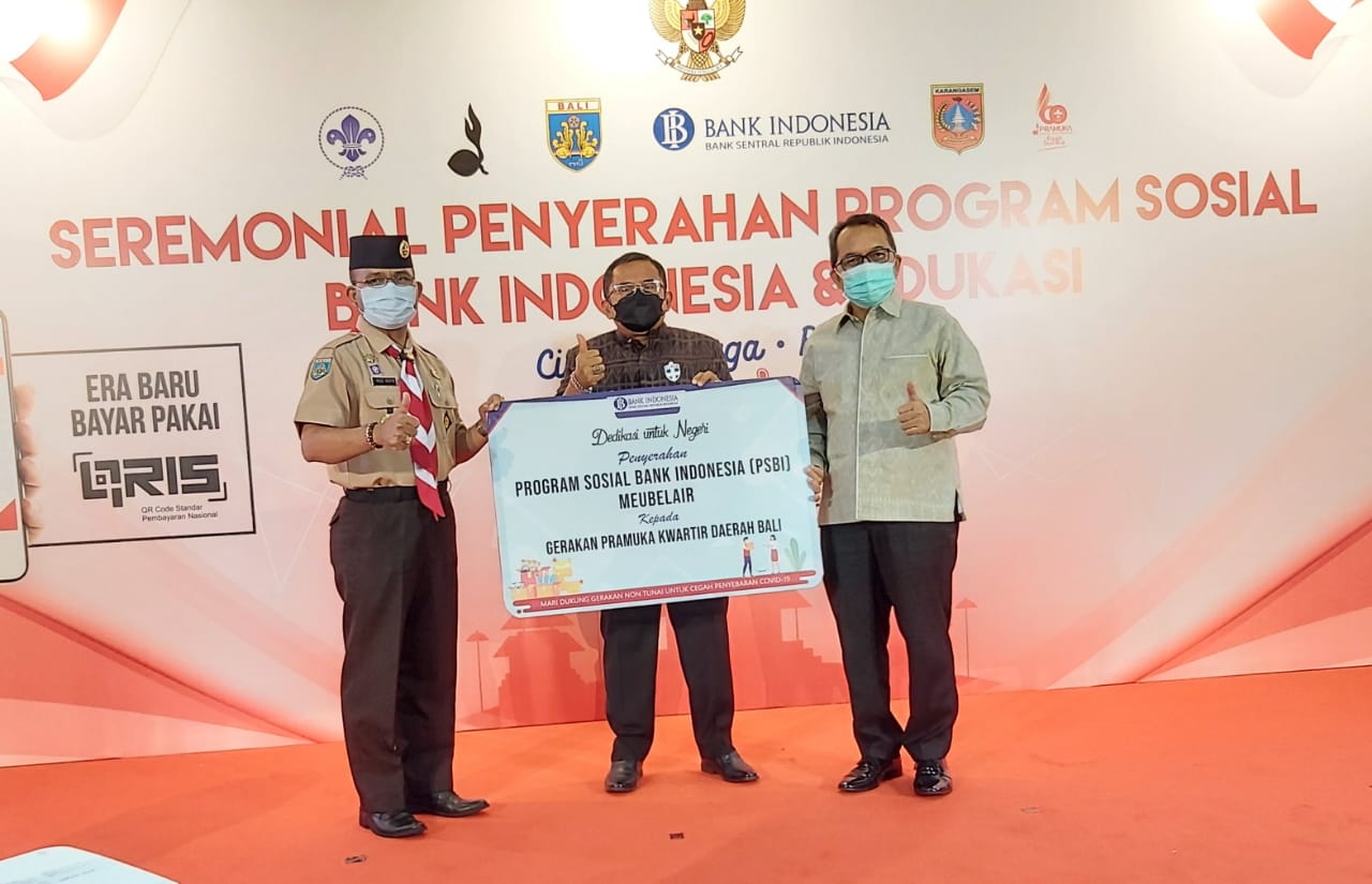 Serah terima bantuan PSBI yang digelar ketat menerapkan protokol kesehatan (prokes) dirangkai sosialisasi ‘’Cinta, Bangga dan Paham Rupiah’’, dihadiri Anggota Komisi XI DPR RI I Gusti Agung Rai Wirajaya, S.E., M.M., Kepala Perwakilan Bank Indonesia Provinsi Bali Trisno Nugroho, Wakil Bupati Karangasem Dr. I Wayan Artha Dipa, S.H., M.H., Ketua Gerakan Pramuka Kwartir Daerah Bali I Made Rentin, Ketua Jangkar Pemuda Nusantara Anak Agung Rai Susilantara, S.E., Kepala BPBD Kabupaten Karangasem Ida Bagus Ketut Arimbawa serta diikuti oleh seluruh anggota Gerakan Pramuka baik secara luring dan daring dengan jumlah peserta 1.000 orang dari seluruh Indonesia.