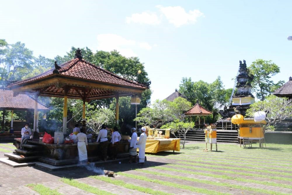Segera dipugar, digelar upacara Nuntun Ida Bhatara di Pura Maha Widya Saraswati Kampus Jimbaran, Senin (4/4/2022). (Foto: Ist)