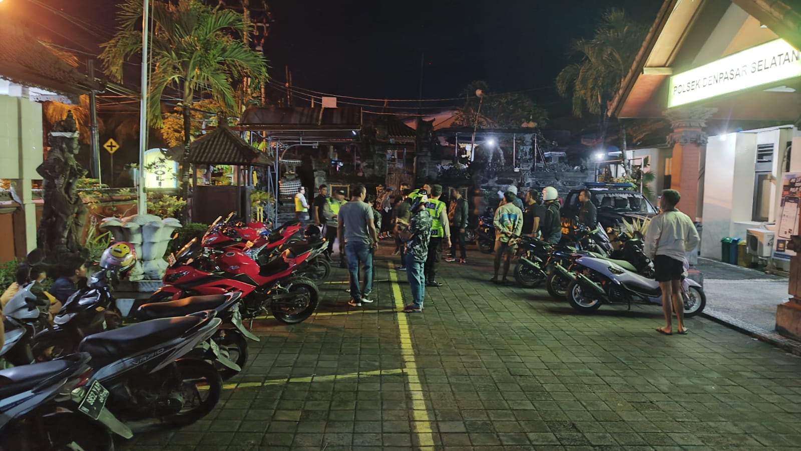 Polsek Denpasar Selatan menggelar razia di depan Mako Polsek dengan melibatkan 15 personil dipimpin langsung Kapolsek Densel Kompol Made Teja Dwi Permana, S.H., S.I.K., pada Minggu (6/3/2023) dini hari. (Foto: ist)