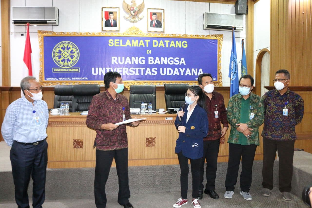 Badung, baliilu.com – Rektor Universitas Udayana menyerahkan Sertifikat Penghargaan kepada mahasiswa yang telah mengikuti program IISMA (Indonesia International Student Mobility Award) dan ICT (International Credit Transfer) tahun 2021 yang dikelola oleh Kantor Urusan Internasional (KUI) Universitas Udayana, bertempat di Ruang Bangsa, Gedung Rektorat Kampus Jimbaran, Jumat (25/2/2022).