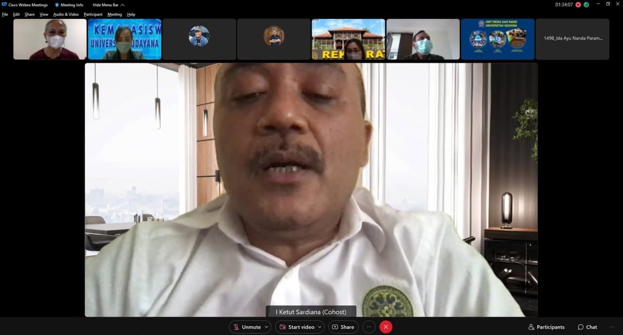 Badung, baliilu.com – Universitas Udayana menggelar sosialisasi Sistem Informasi Manajemen Merdeka Belajar Kampus Merdeka (SIM MBKM) secara daring bagi mahasiswa melalui aplikasi Cisco Webex, Selasa (1/3/2022). Sosialisasi dibuka oleh Wakil Rektor Bidang Akademik dan turut dihadiri oleh Wakil Rektor Bidang Kemahasiswaan, para Pimpinan Fakultas, Ketua USDI dan Tim, Koordinator MBKM dan jajaran BKM Unud.